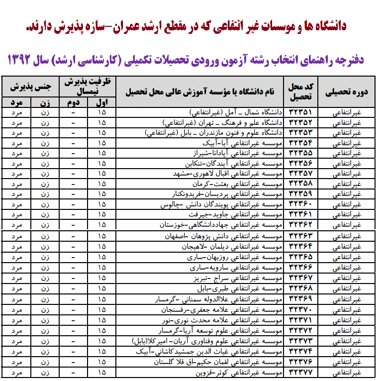 دانشگاه ها و موسسات غیر انتفاعی که در مقطع کارشناسی ارشد عمران - سازه 1392 پذیرش دارند.